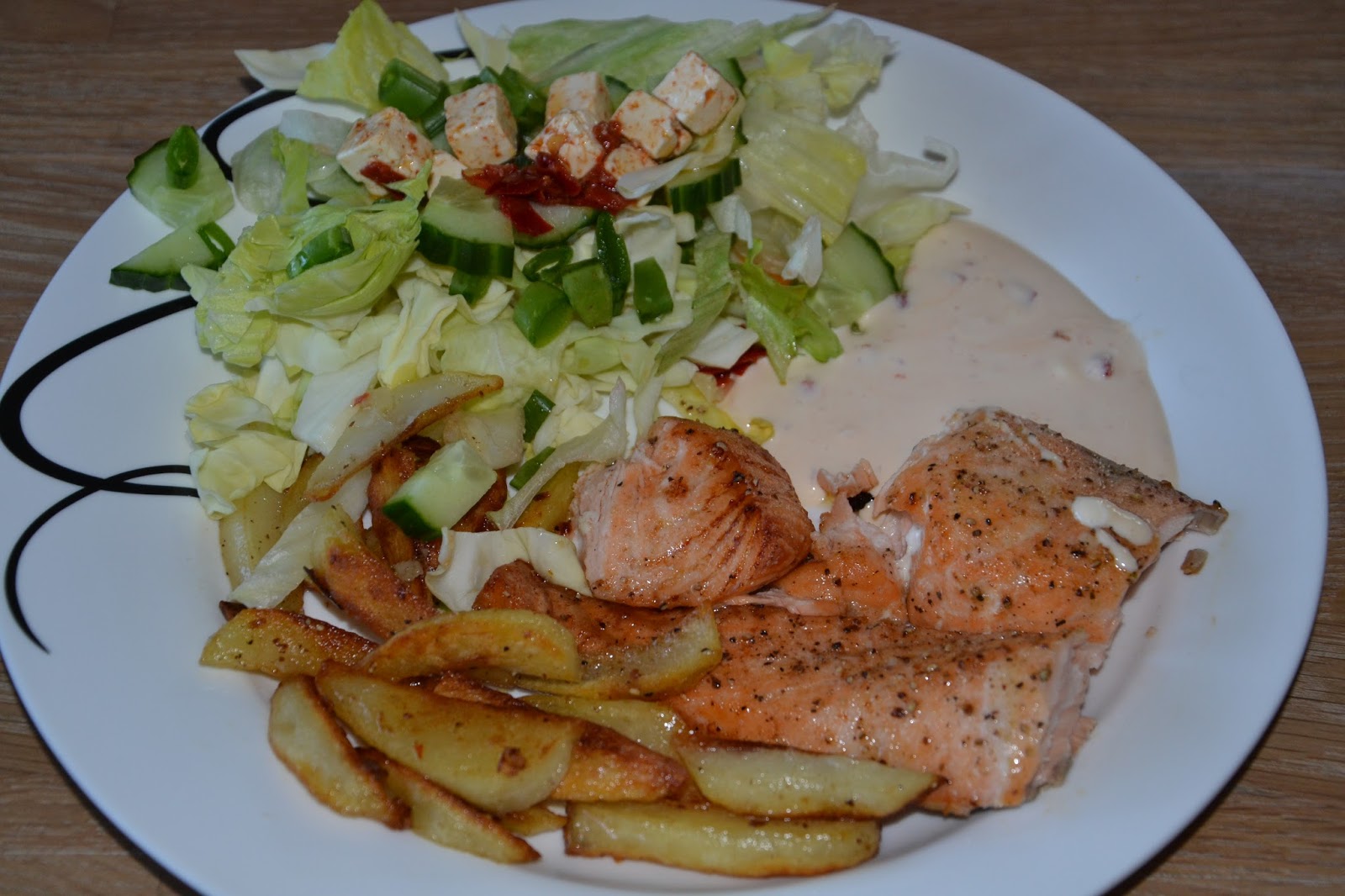 Den siste tiden har jeg byttet ut sitron og dill med hvitløk og chili når jeg har stekt ørret eller laks. Det blir en annen smak, og jeg har gjort det når jeg skal ha salat med stekt fisk. Jeg steker ofte mer fisk enn jeg hadde behov for, da har jeg til salat til lunsj eller middag dagen etter.